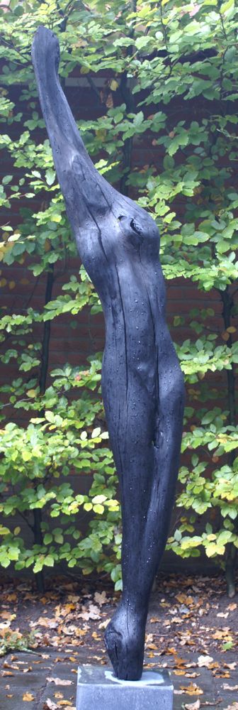 Een beeld is voor mij geslaagd als het spannend en mooi is. Als uitgangsmateriaal gebruik ik al gedeeltelijk verrot hout dat ik in het bos vind.