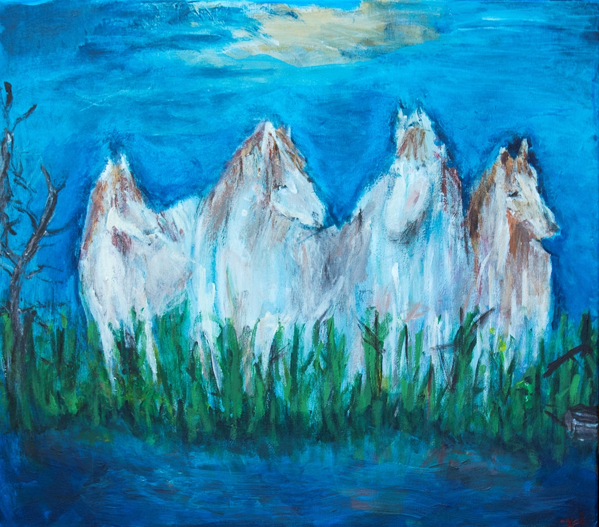 Wit Blauw Acryl Blue Natuur Paarden White Nature Horses