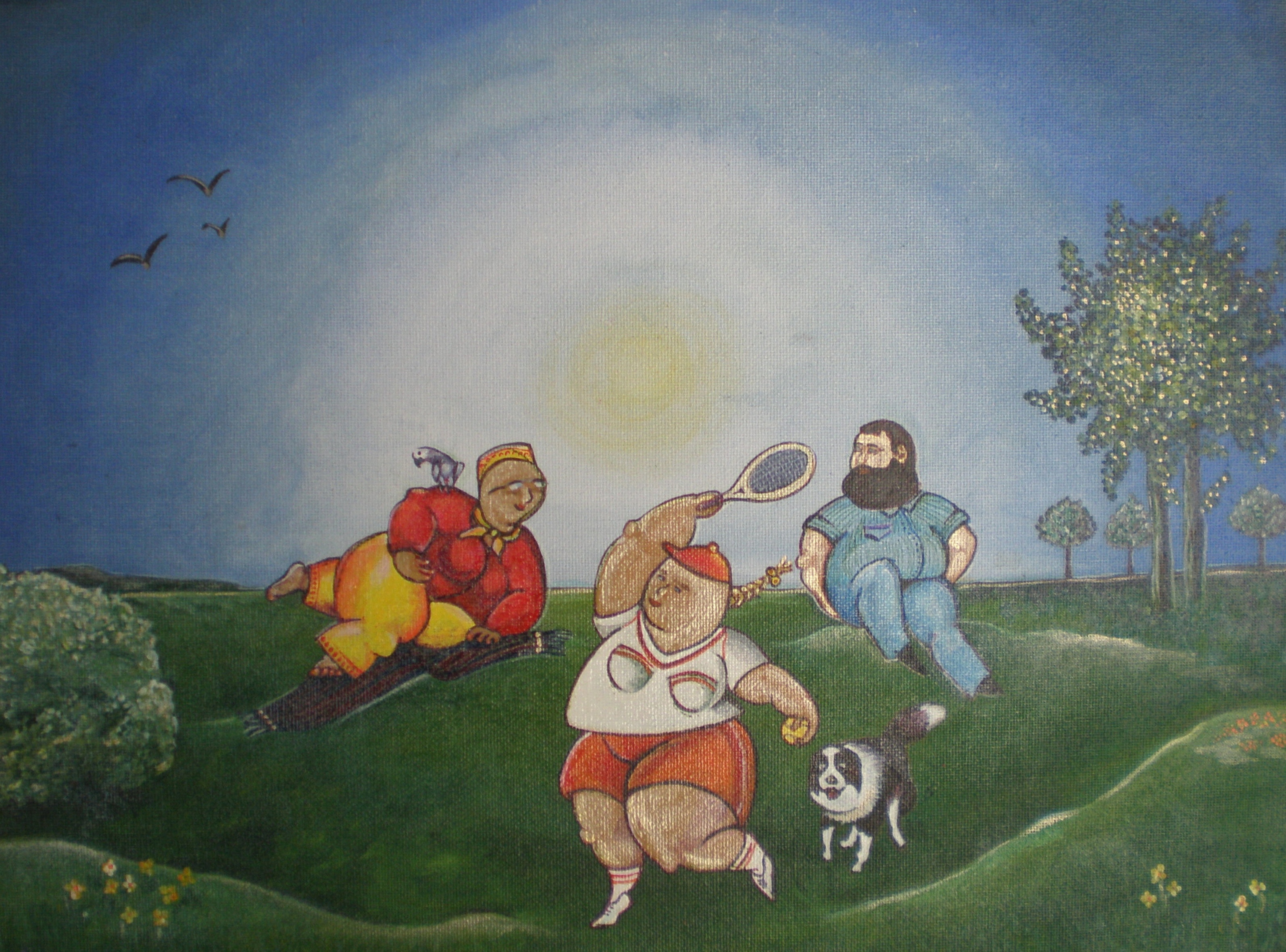 Een middagje "oltesaam" voor een kiekje. Acryl op paneel. In familie bezit.