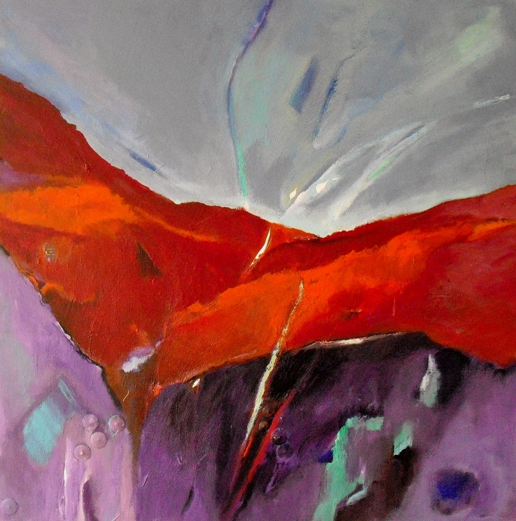 Abstract Rood Oranje Landschap Paars Gemengde Techniek Kleurrijk Doek Kleur