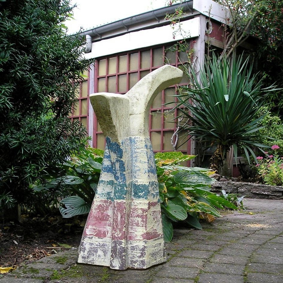 Indío Pajaro, Indiaanse vogel. Vrijheidssymbool bij de Inca's. Tijdens haar studiereis door Zuid-Amerika, waar ze kennismaakte met de rijke cultuur van de Inca's bleek de vogel in het verre verleden een belangrijke plaats bij de indianen ingenomen te hebben. De vogel, die moeiteloos de steile hoogte bevloog. Hij wist een "verbinding" tussen de verschillende stammen teweeg te brengen. Deze vogel is in een geheel eigen techniek vervaardigd. Het betreft een laminatie in cement.