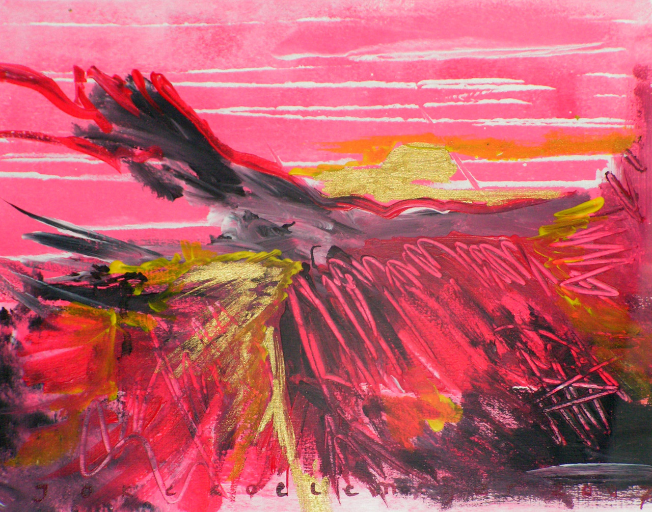 felle roden op papier gezet met hier en daar wat goud, het resultaat was een echte 'sunset' met passepartout en lijst