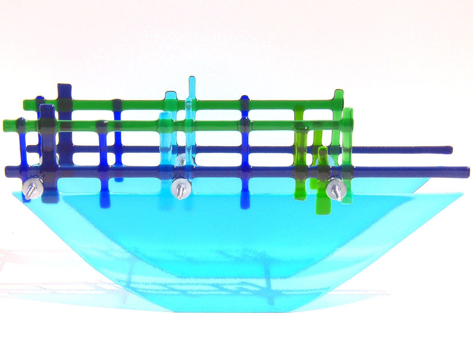 Gefused glas catamaran verbonden door rvs-schroefdraad.