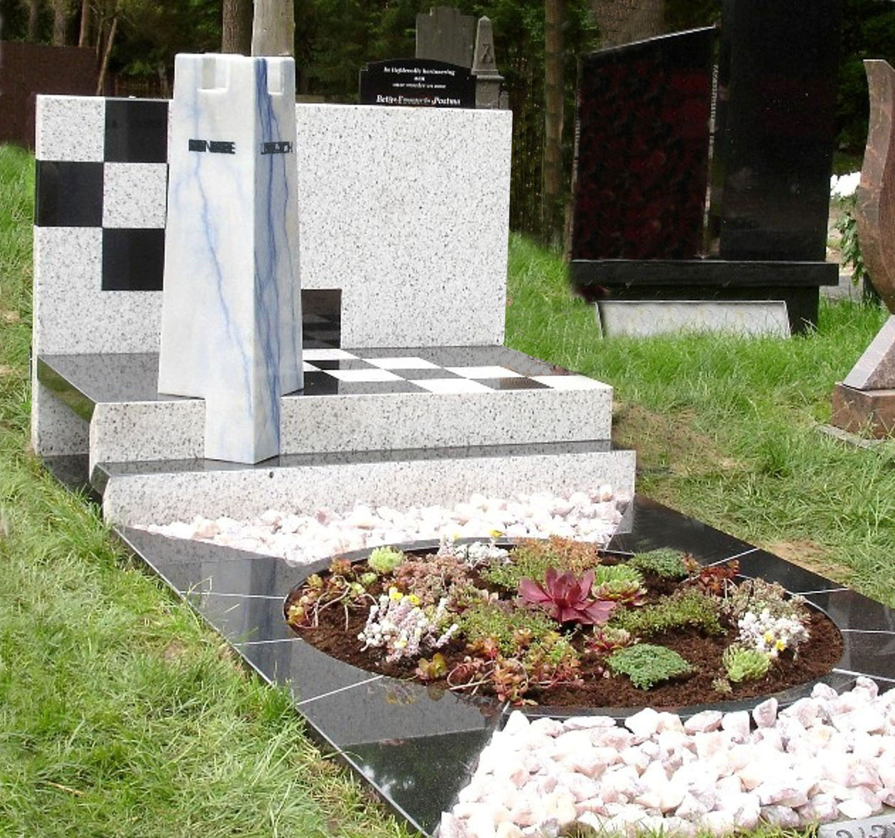 Grafmonument voor begraafplaats Soerenseweg in Apeldoorn, uitgevoerd in graniet en in azul macaubas( Brazilië).