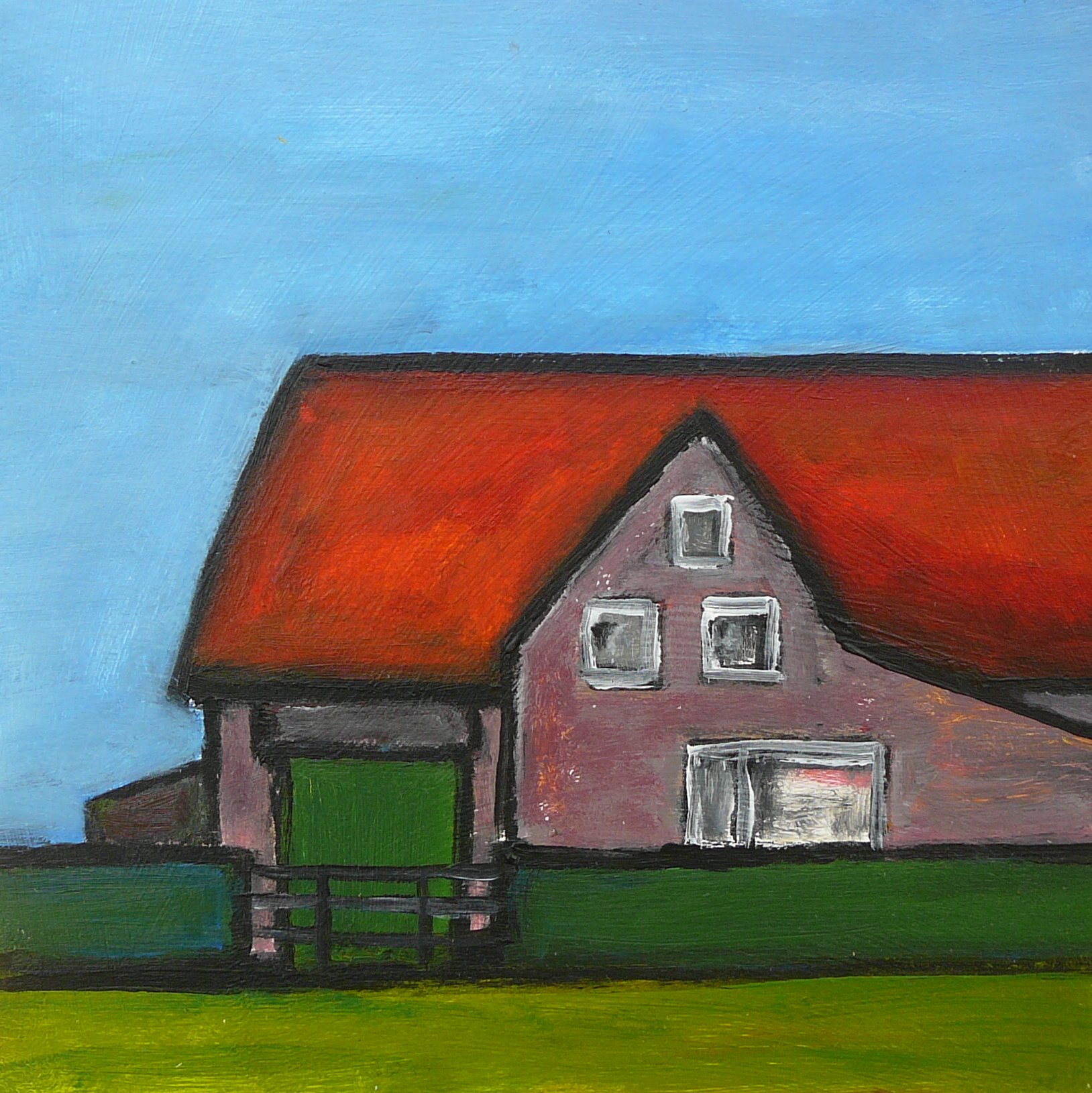 Schilderij Rood Landschap Vierkant Boerderij Dak Texel