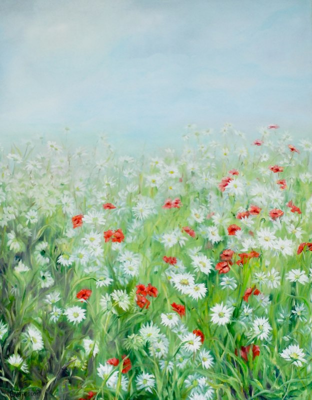 Schilderij Bloemen Wilde Olieverf Papaver Bloemenweide Margrieten