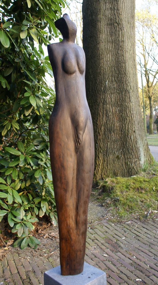 Een beeld is voor mij geslaagd als het spannend en mooi is. Als uitgangsmateriaal gebruik ik al gedeeltelijk verrot hout dat ik in het bos vind.