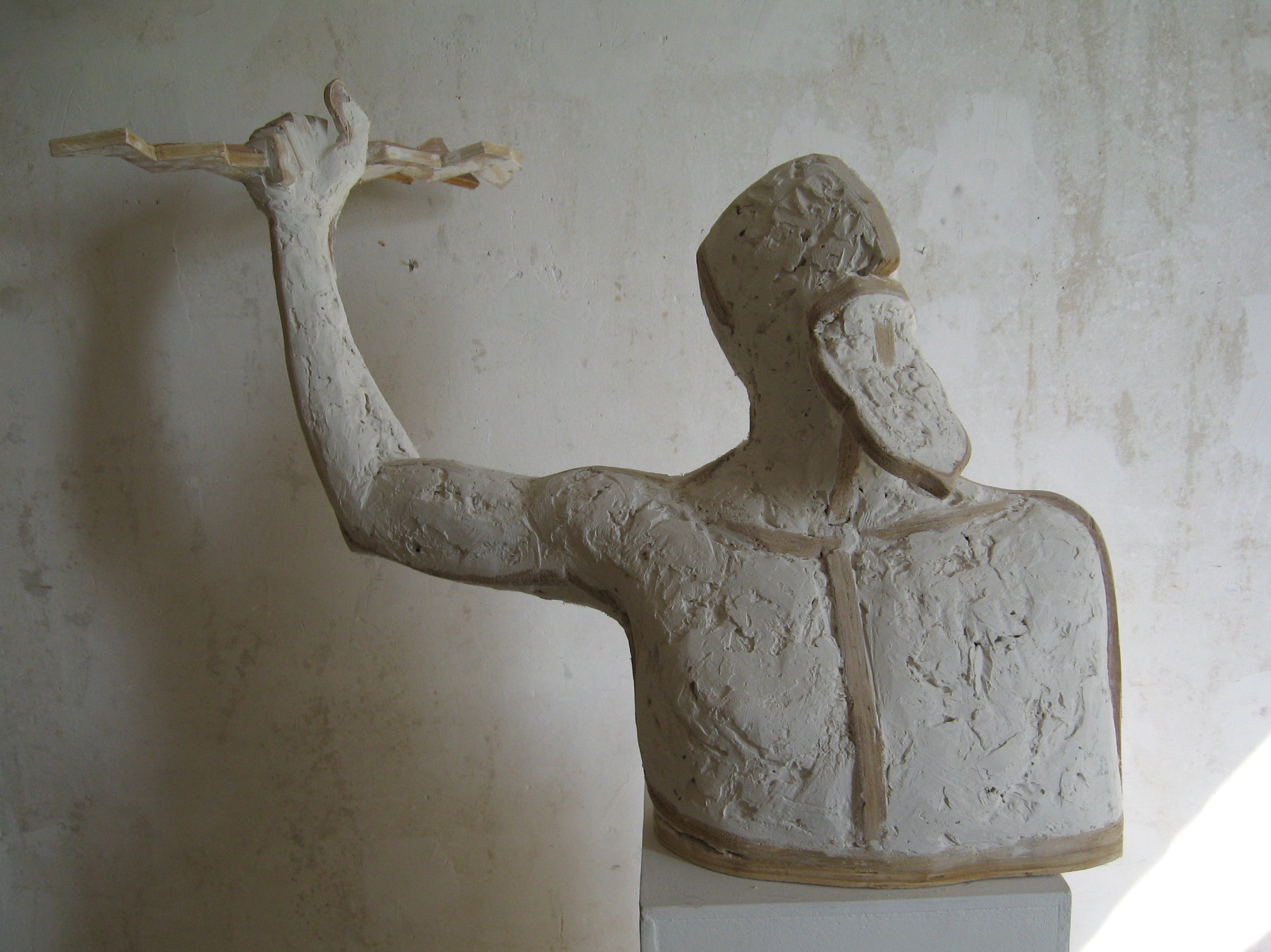 Ranke doch grillige plaasterbeelden, waarvan het aangezicht het eindpunt van een vertikale beweging is.Figuratief en vergeestelijk. Passionate about shapes and materials, I have turned my back on the tendency of the majority of today’s art which sets asides the materials interested only in the concept. I remain a craftsman, who loves handwork, shapes and textures. Voluntarily my work remains figurative, authentic and exigent.