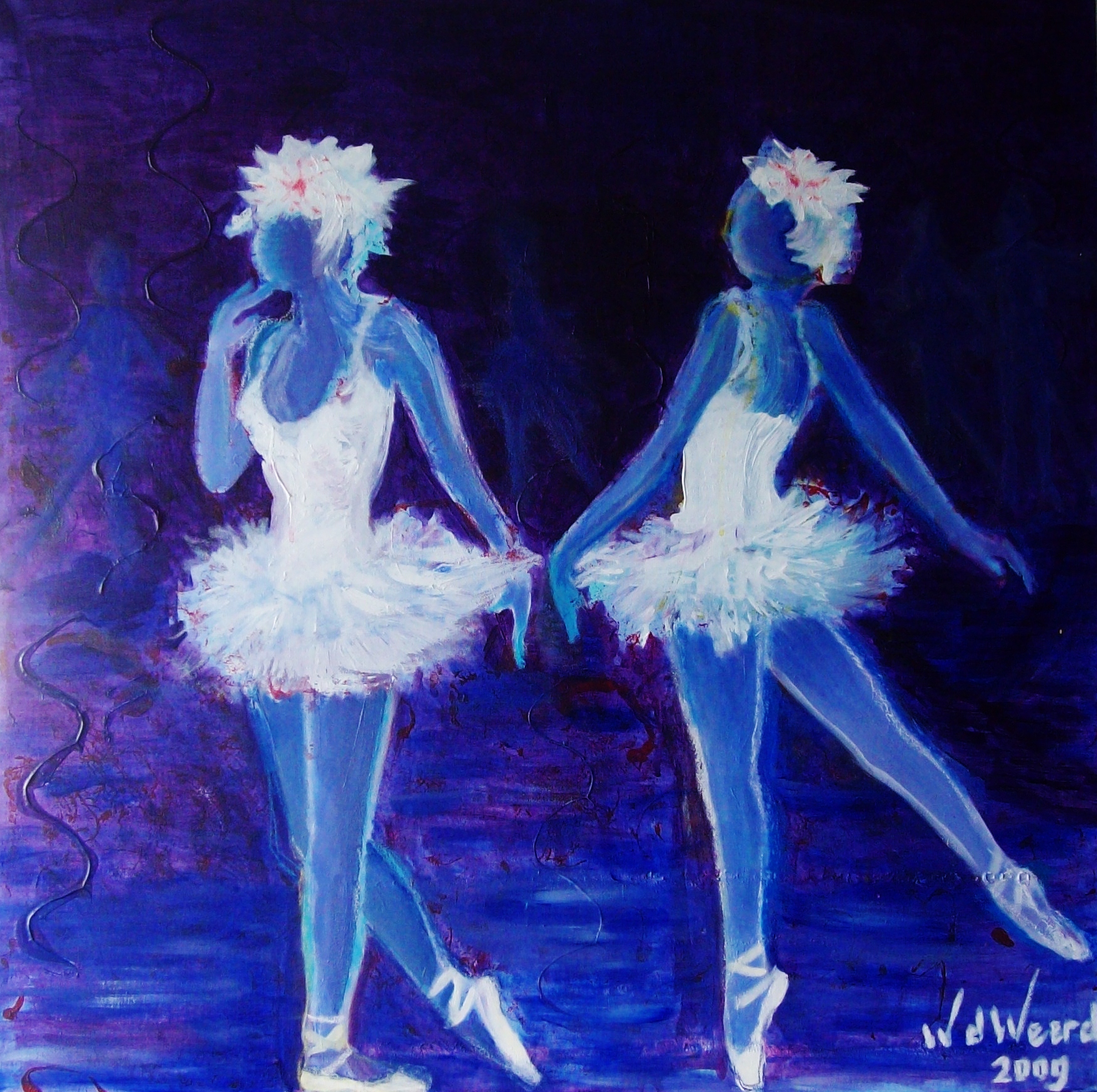 2 balletmeisjes in de schijnwerpers.