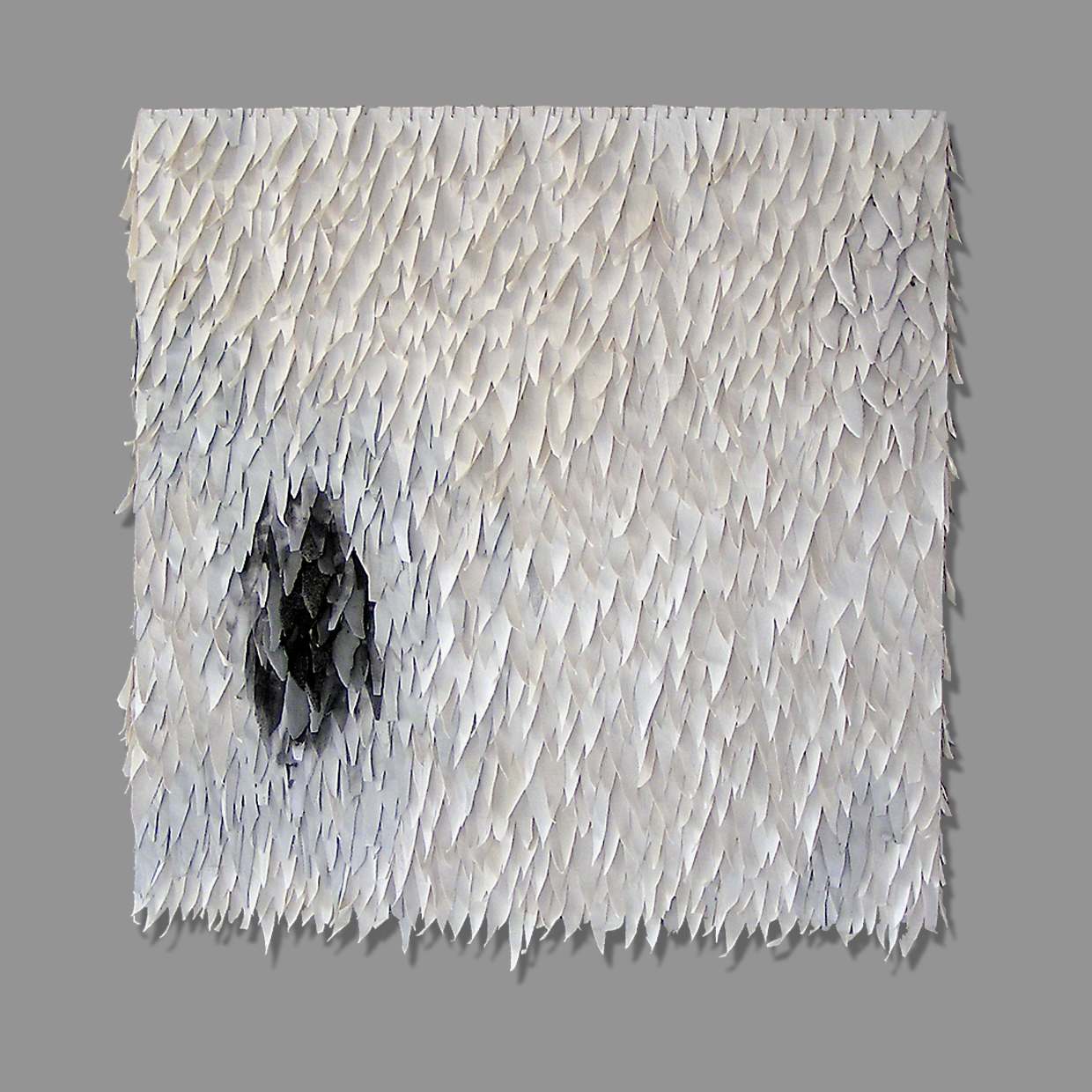 Wandobject bestaande uit keramische en textiele elementen.