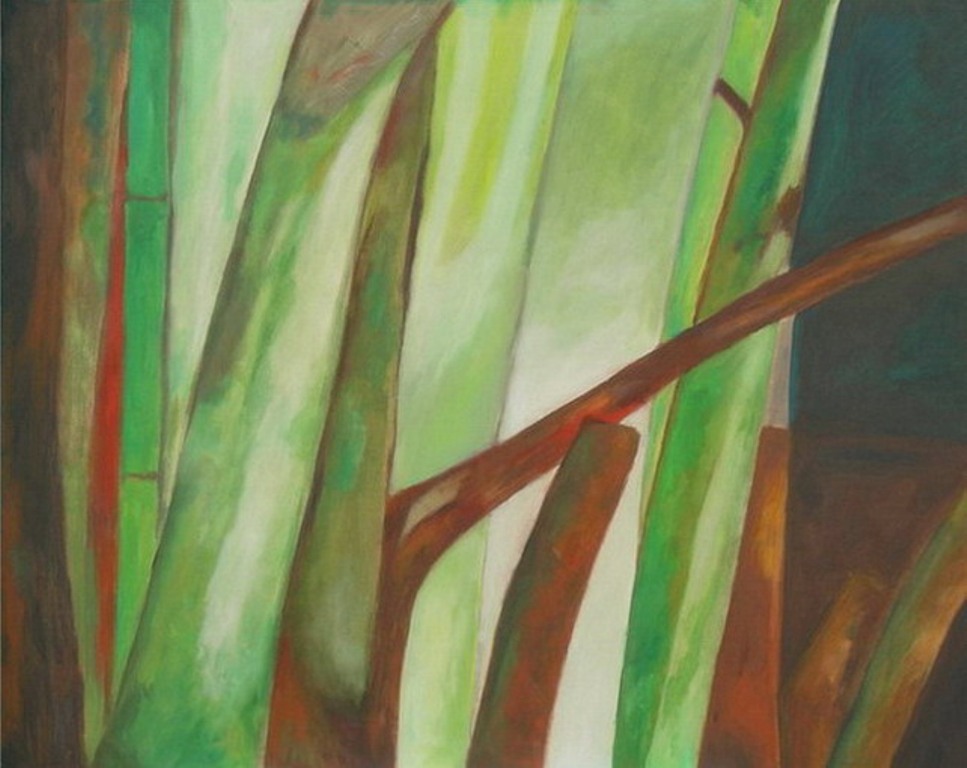 Mijn naam is Gwen Oberg, geb 64 en pas afgestudeerd aan de Academie voor Schone Kunsten in Arendonk, waar ik 7 jaar heb leren schilderen. Mijn vertekpunt is een foto van de natuur. De sfeer en rust van de natuur probeer ik in mijn schilderijen terug te laten komen, maar wel met felle kleuren. Ik heb van te voren wel een beeld voor ogen : fris en vrolijk, maar ieder schilderij groeit en weet nooit precies waar het zal eindigen. Het grootste probleem zal altijd wel blijven: wanneer is het af