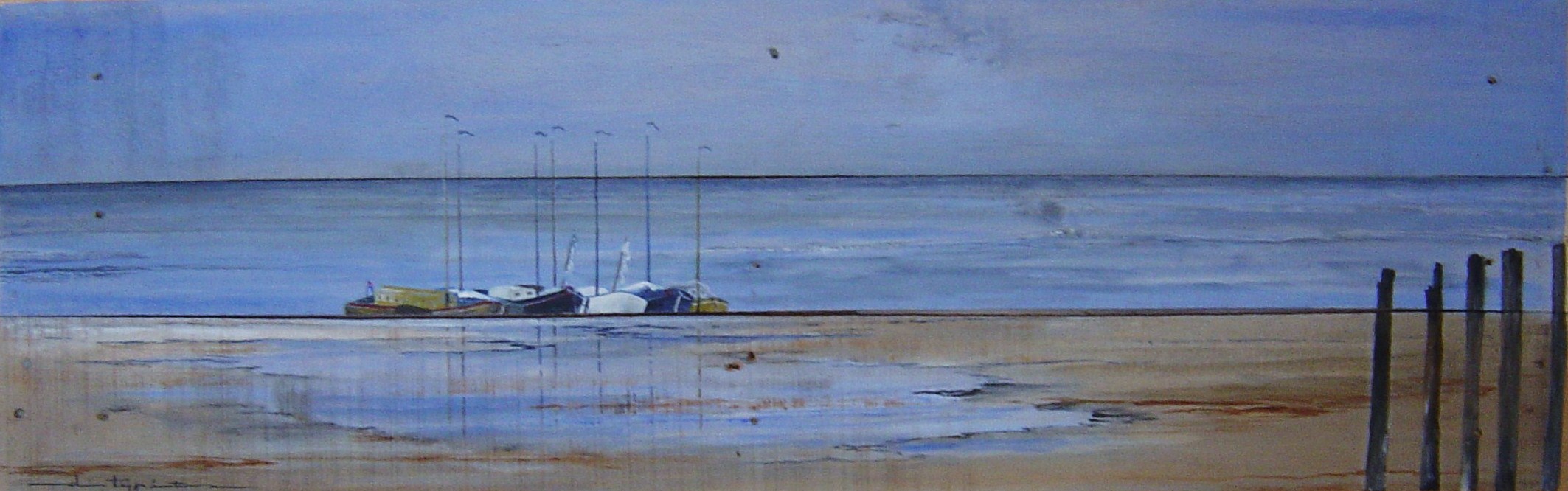 Zee Strand Blauw Figuratie Hout Boten Wad