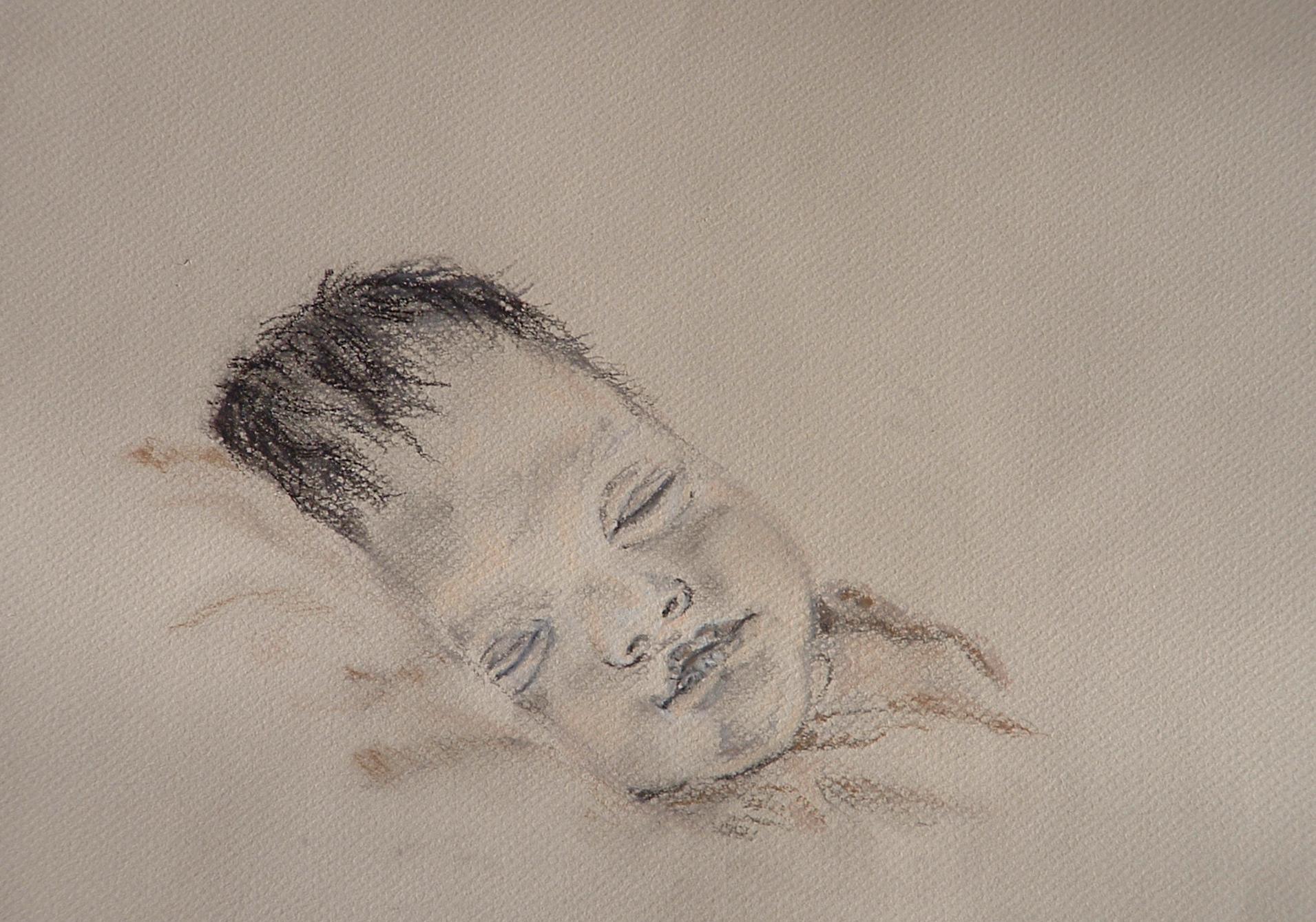 Baby Baby's Kind Kinderen Portret Portretten Slaap Slapen Krijt Tekening Pastel