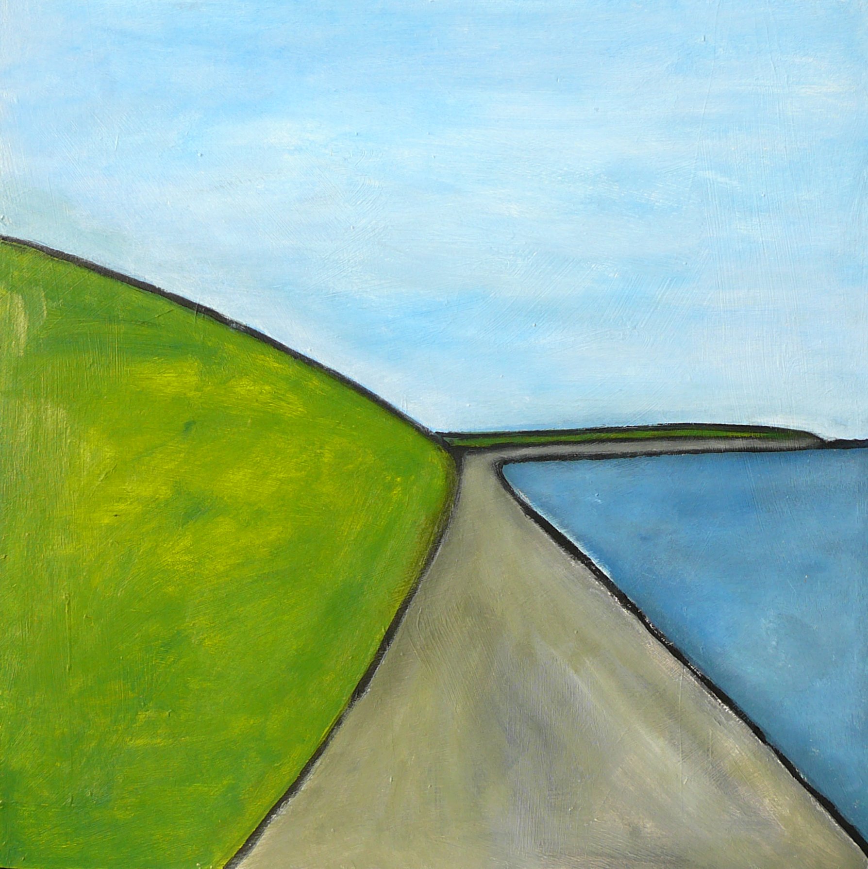 De Texelse dijk in groen, blauw, asfalt en zilt. Een eenvoudige verdeling. VERKOCHT.