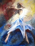 Dans, Vurig, Explosie van Kracht, Elegantie. Het ziet er zo soepel en gemakkelijk uit. Maar wat een training gaat er aan vooraf... Alles wat je gemakkelijk lijkt te kunnen in je leven is ontstaan door eindeloze oefening... Doek in blank houten baklijst