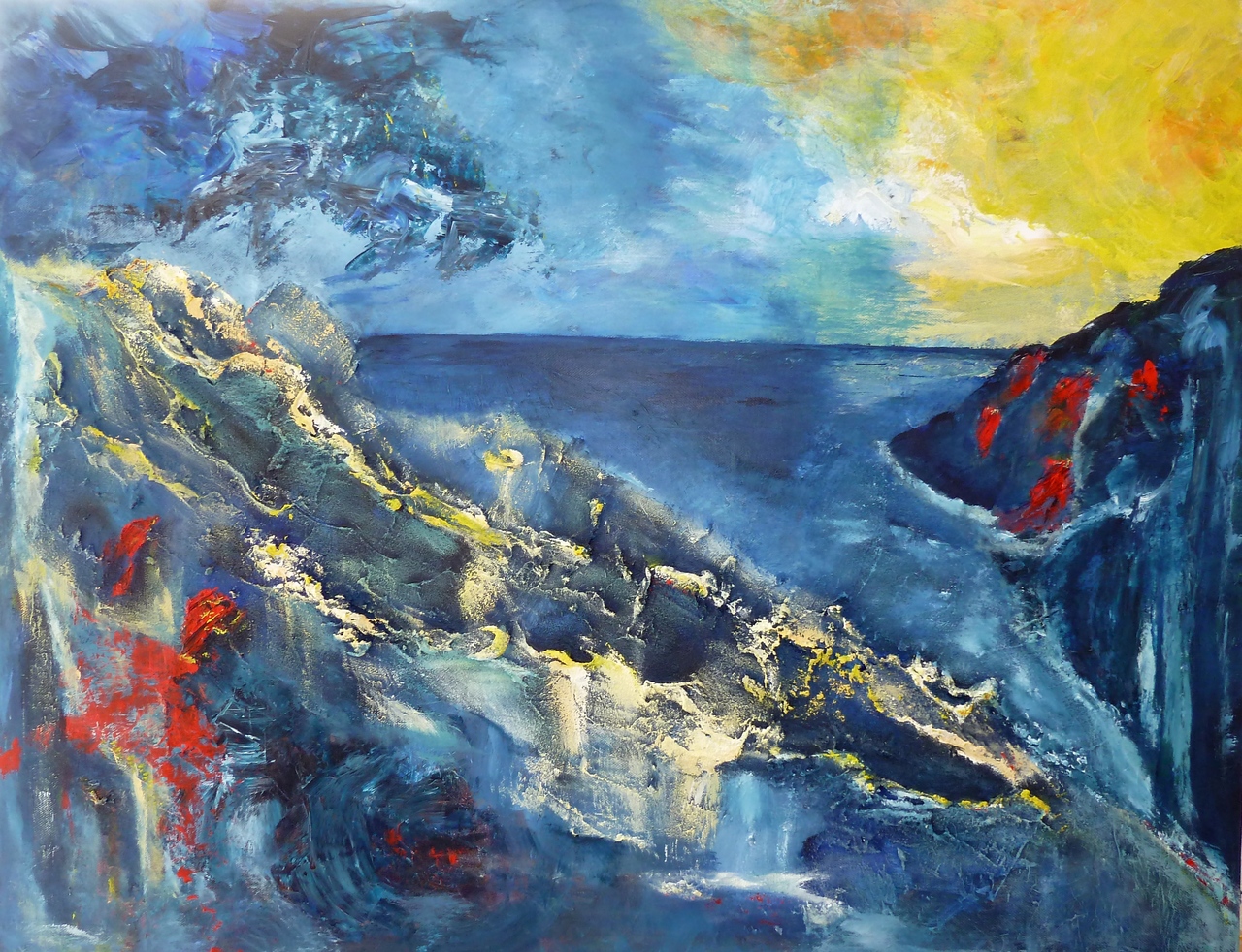 Zee Zon Abstract Blauw Acryl Rots Rotsen Vulkaan