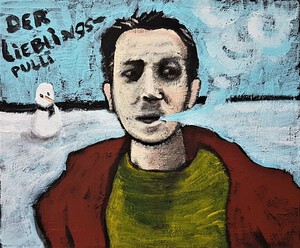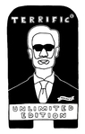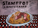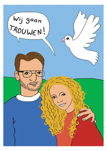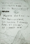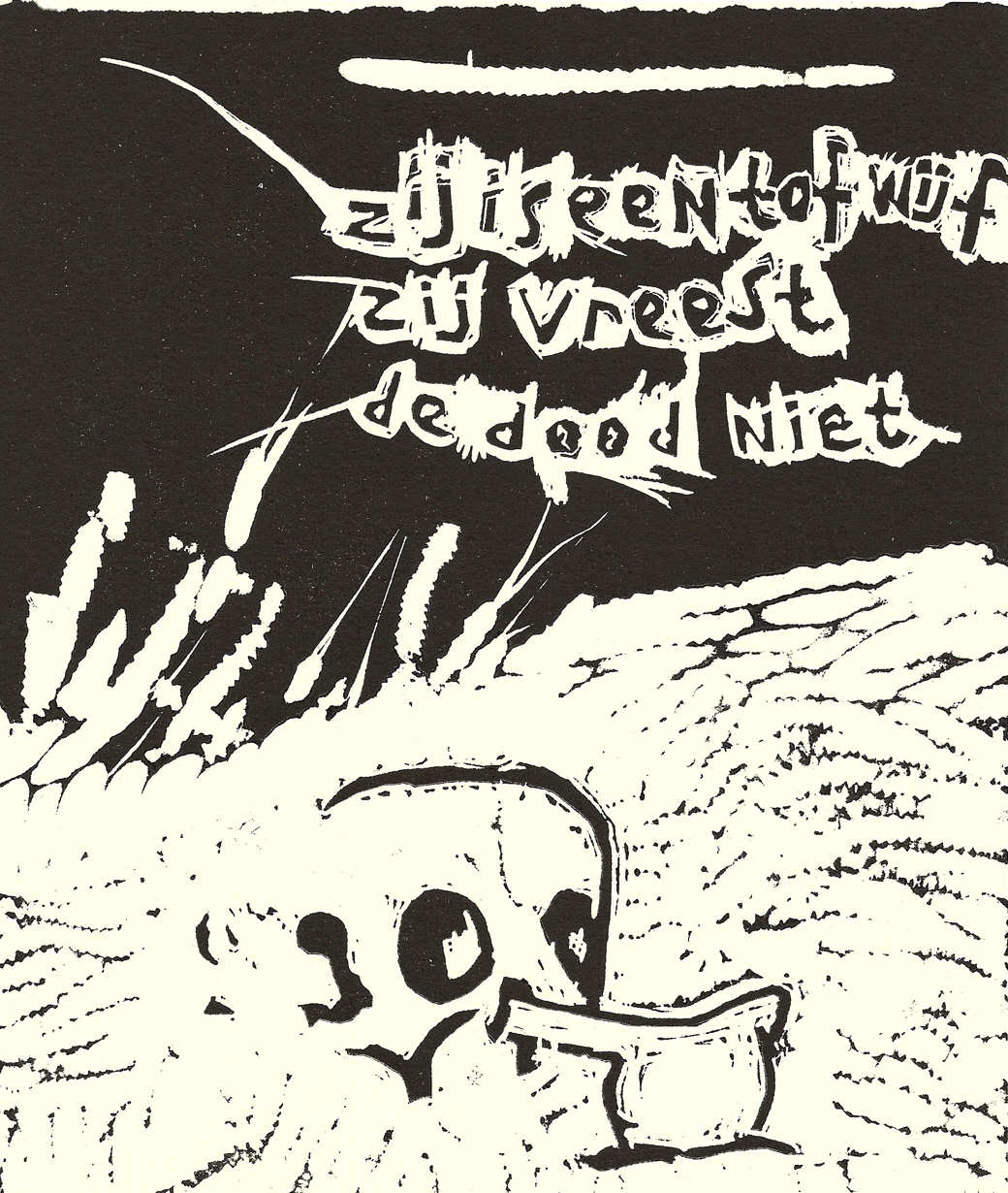 En nog een linosnede van zijn hand. Vergeet niet dat tekst altijd in spiegelbeeld moet worden geschreven op de lap linoleum!
