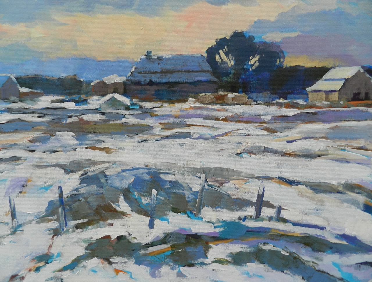 Winter landschap 60 x 80 cm , acryl op linnen doek