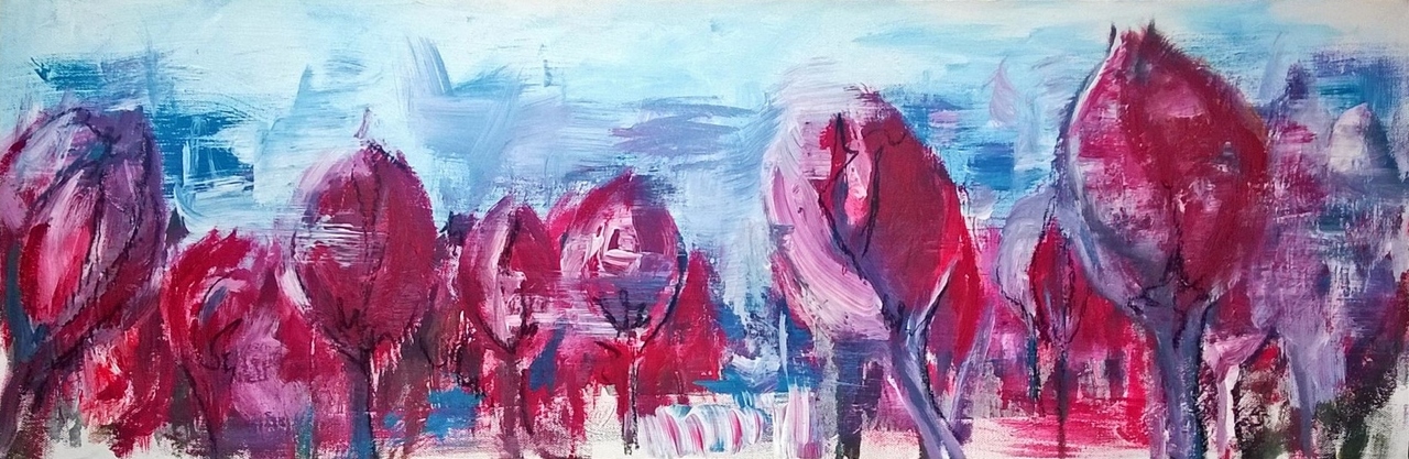 tulpen uit eigen tuin 30 x 90 cm acryl op 3D doek