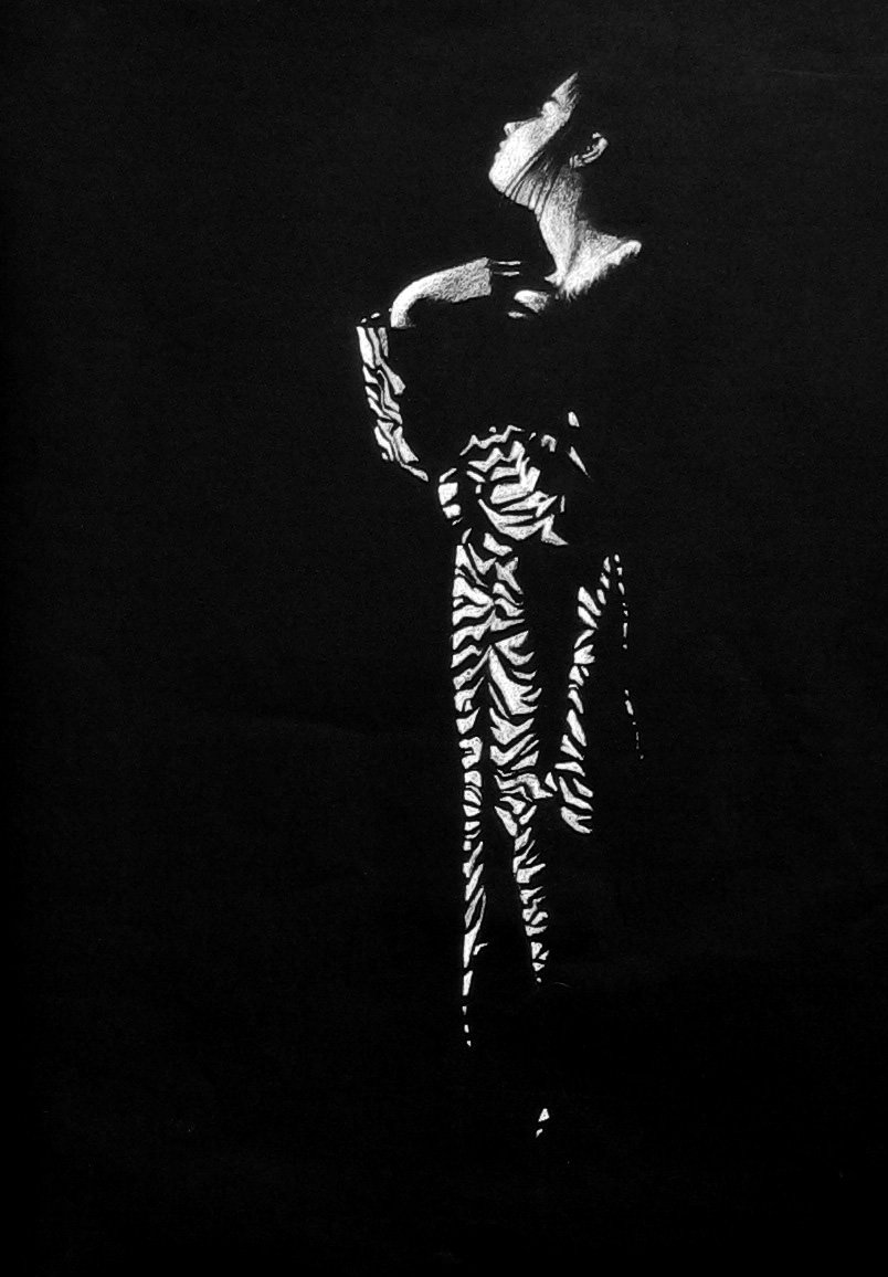 mijn dochter in mijn zebra jas wit krijt op zwart papier