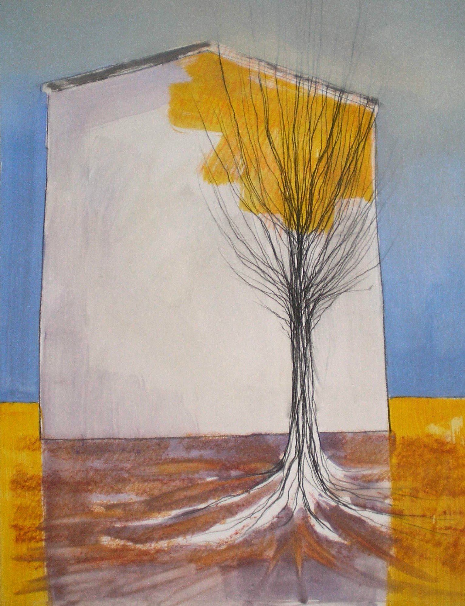 Huis Boom Geel Paars Blauw