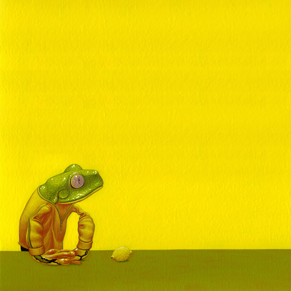 Schilderij Figuratief Geel Figuratie Groen Dieren Dier Realistisch Surrealistisch Kikker Kunst Schilderijen Surrealisme Realisme Frog Citroen Illustratie Kunstenaar Kunstwerk Citroenen Realistische Groningen Beesten Beest Schilder