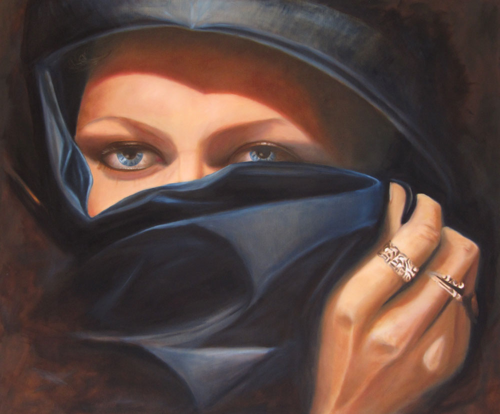 Gesluierde vrouw op doek