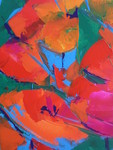In het meest recente werk laat Aarsman zich inspireren door de natuur. Krachtig neergezet met paletmes in heldere kleuren lijkt het alsof het beweegt. Je moet zoeken naar het beeld, van de bloem, het blad.