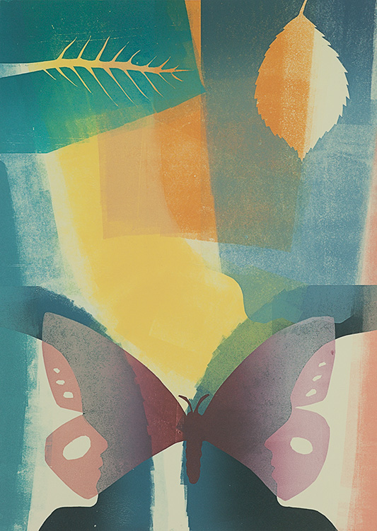 Vrije sjabloondruk uitgevoerd met al eerder gebruikte sjablonen