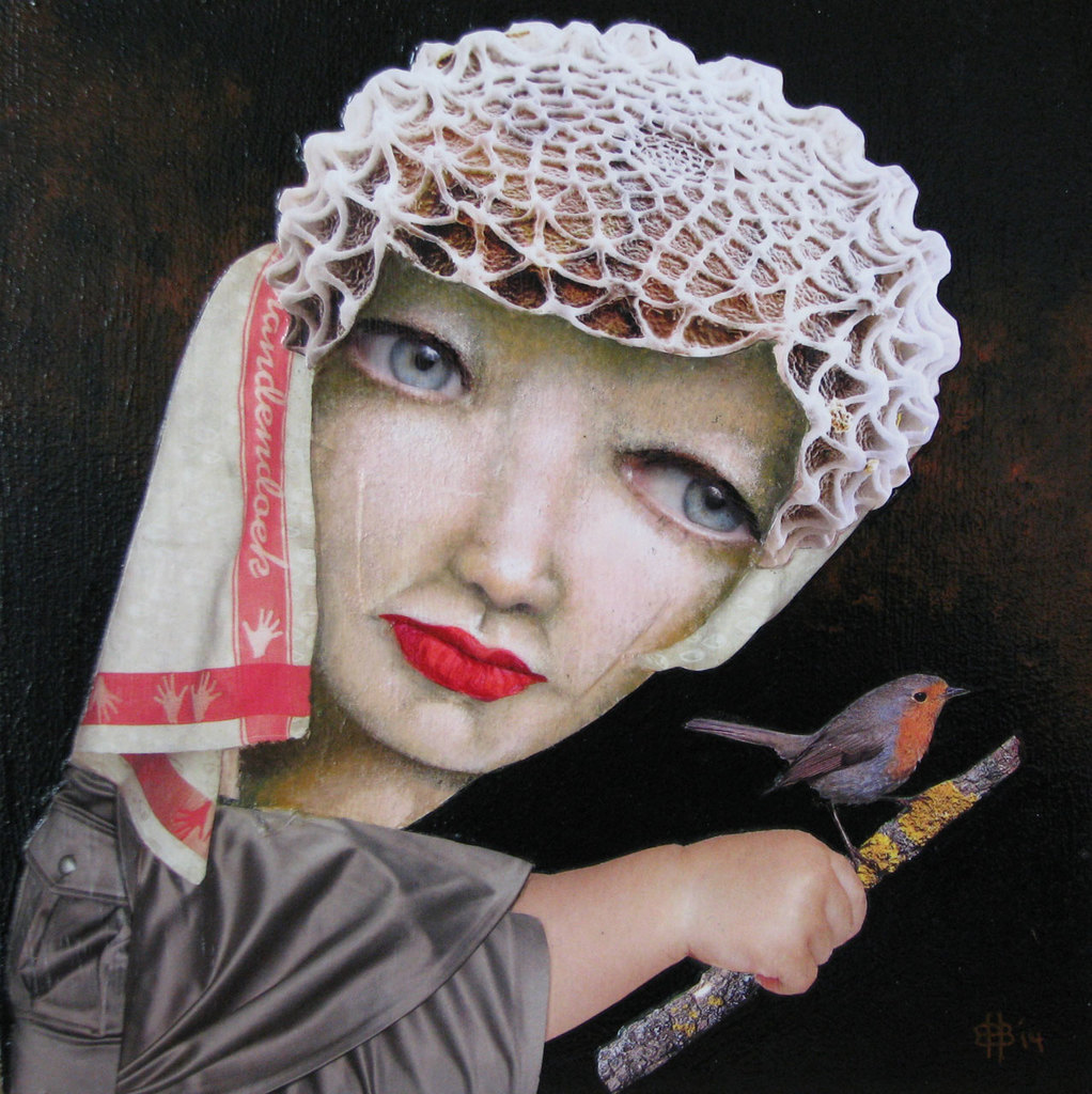 Surreeel Portret Lady Collage Dame Roodborstje Middeleeuws Medieval Robin