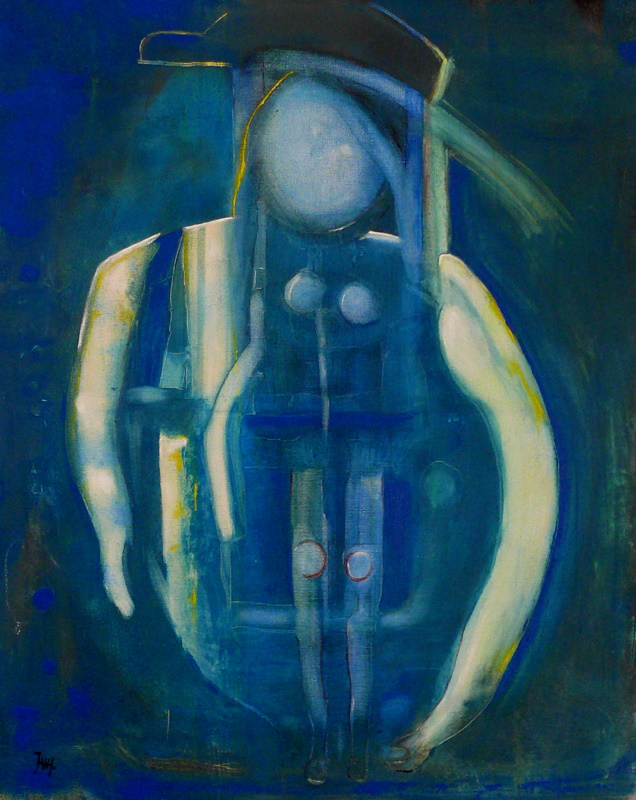 Het Meisje met de Blauwe Hoed is geschilderd in mijn beginperiode, in de dagen dat ik me ook met ikonen bezighield. Achteraf zie ik enige verwantschap.