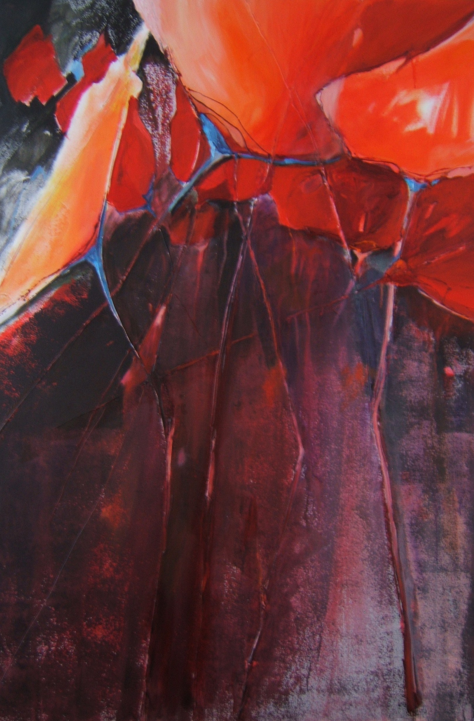 In diep rode kleuren,en vele lagen gemaakt.
