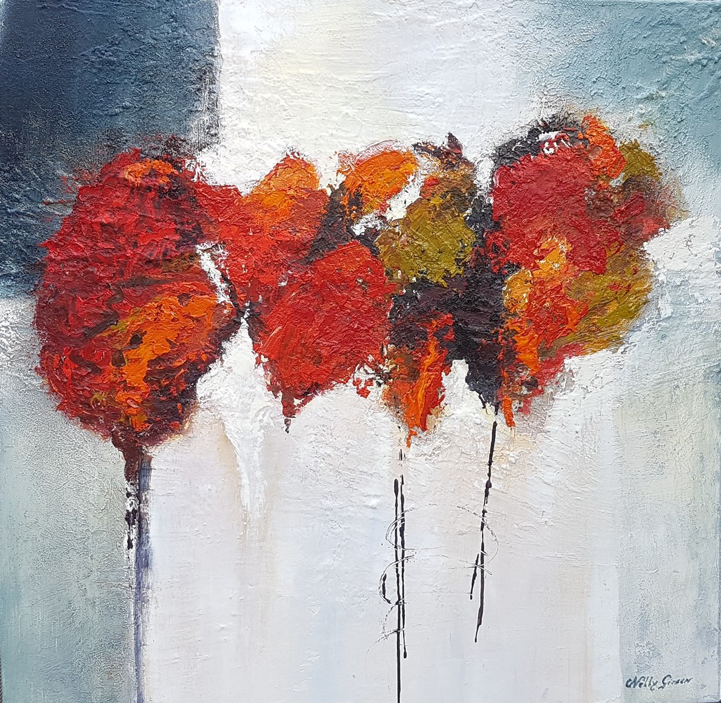 Nelly Giesen geboren in 1946. Nelly volgde enkele jaren les bij een masterclasser. Zij heeft zich wel steeds meer haar eigen stijl aangeleerd. De interesse voor fotografie, mode, kunst en cultuur geven haar veel inspiratie. Met regelmaat bezoekt zij musea en maakt studiereizen, zo is zij o.a. in St. Petersburg, Scandinavië,Portugal,Cyprus,Praag, Estland,Letland Krakau,Toscane, Marokko,Damascus, Cairo, Luxor, China en de Verenigde Staten geweest. Nelly schildert met name met Artisan olieverf. Er worden ook verschillende materialen in haar stukken verwerkt waaronder: speksteenpoeder, fijnzand, jute, glaswol, impasto en nog meerdere soorten. Zij heeft een eigen manier van schilderen. Nelly heeft reeds meerdere exposities in de regio en in het buitenland op haar naam staan. Nelly schildert o