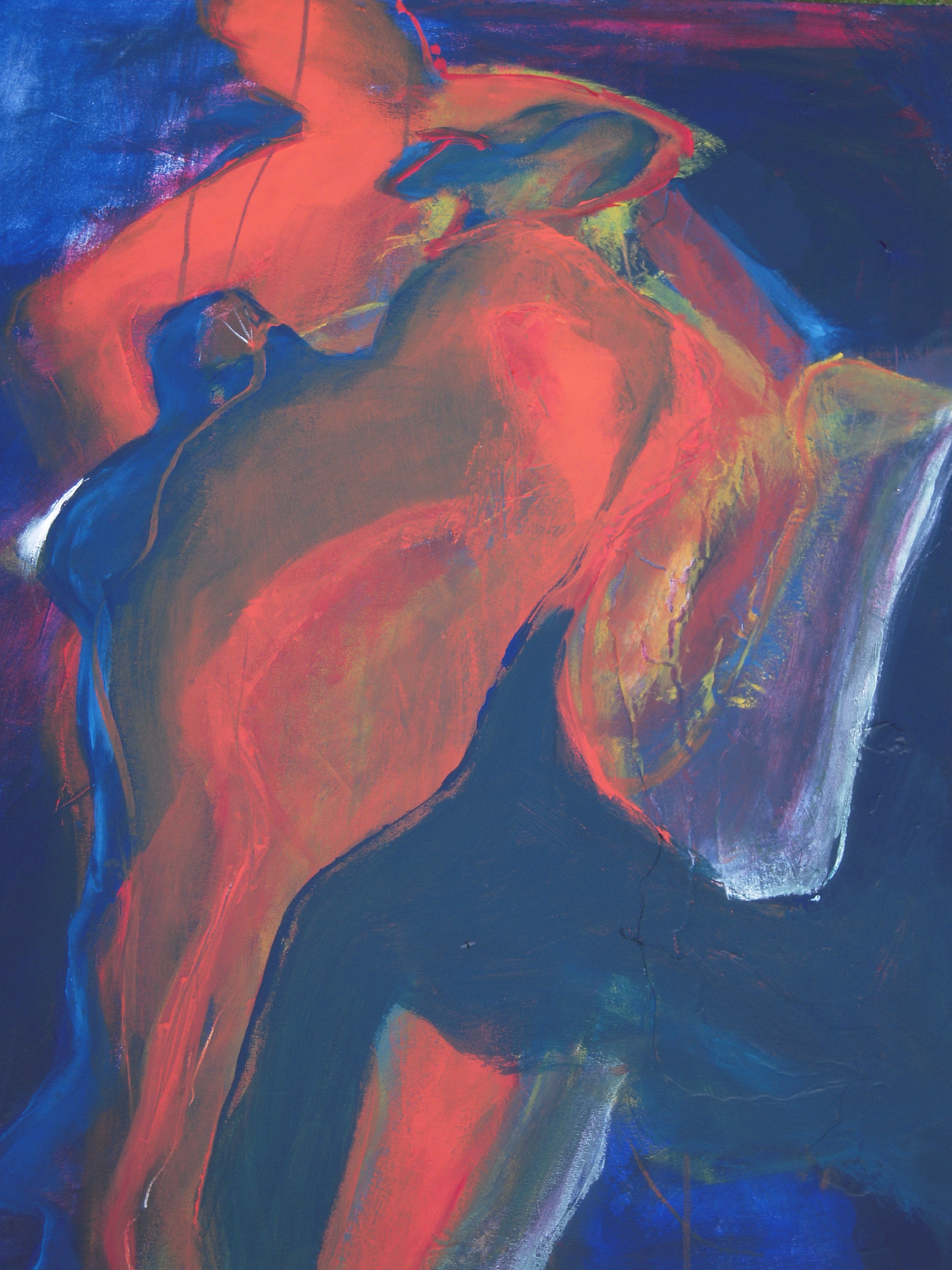 Abstract Rood Acryl Doek Figuren Lyrisch Worsteling