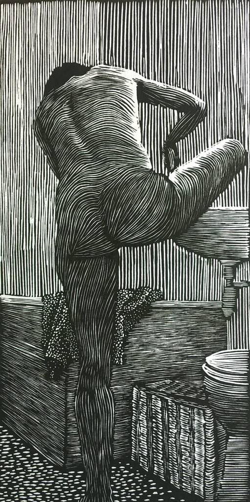 in the bathroom: tending feet