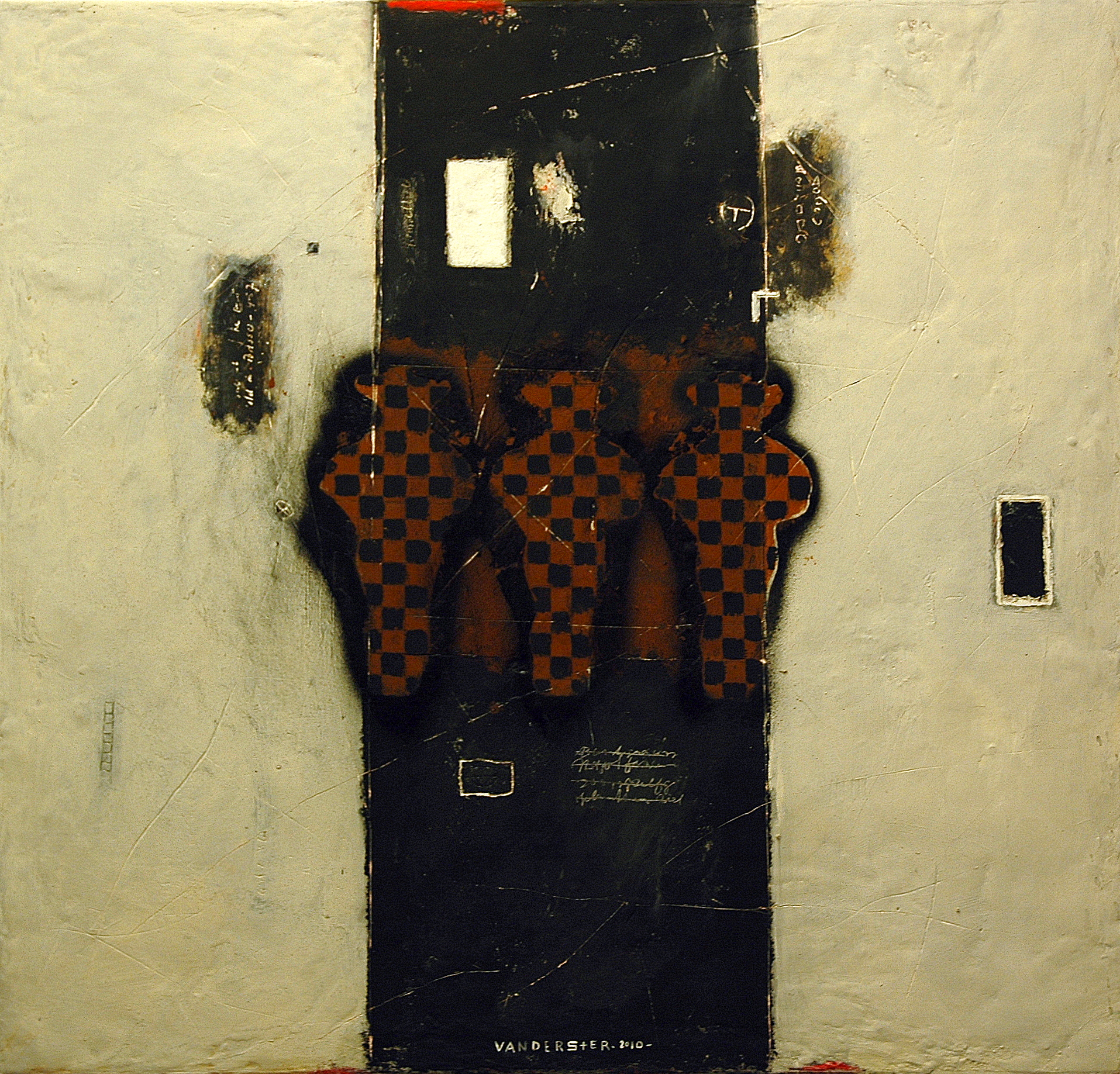 Mensfiguur 95 x 105 cm. materie-schilderij