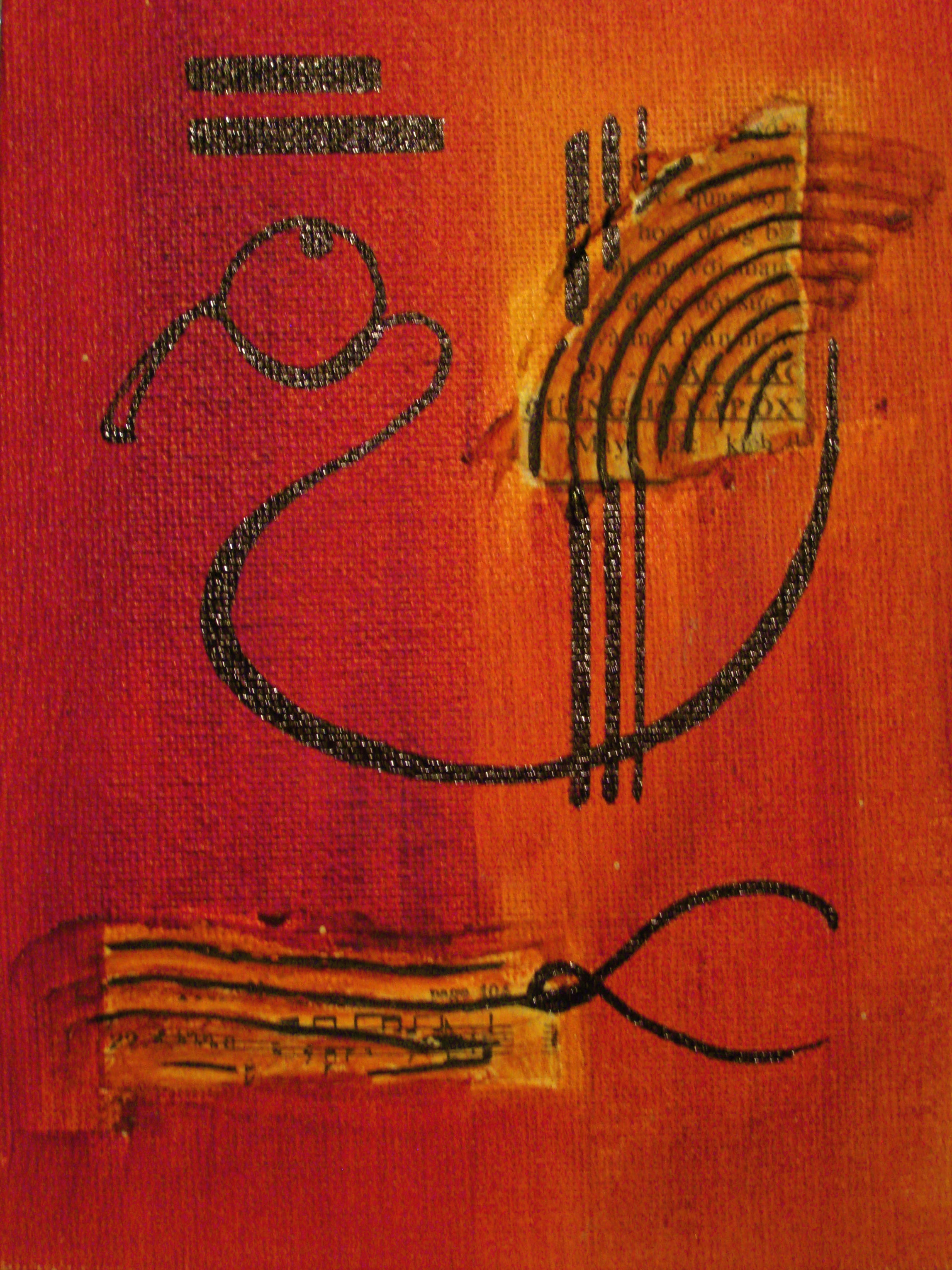 Dit kleine collage in Burnt Sienna & Crimson Lake maakt deel uit van een tweeluik in the serie: "Female Transformation." (The Womb Blessing)