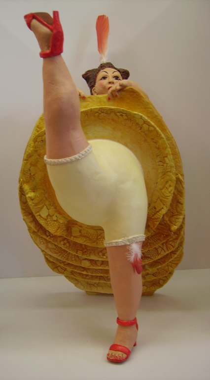 klei/ gekleurde klei/acryl en "parels". Madam is gemaakt in 2 delen.