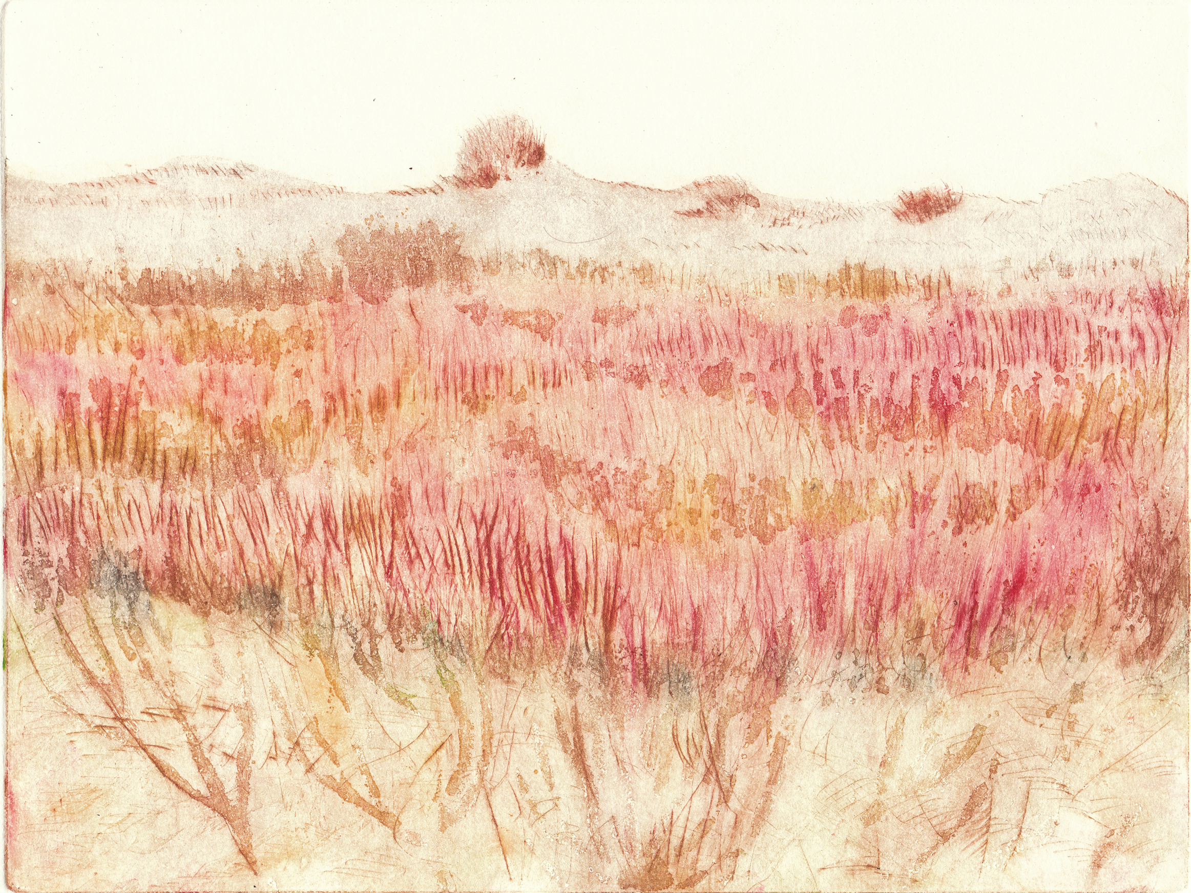 Op een cursus Grafiek bij kunstenaar John Hartjes in Dieren de basis van de etstechniek geleerd, waarvan dit het resultaat is van 3 maal etsen en afdruk in kleur.