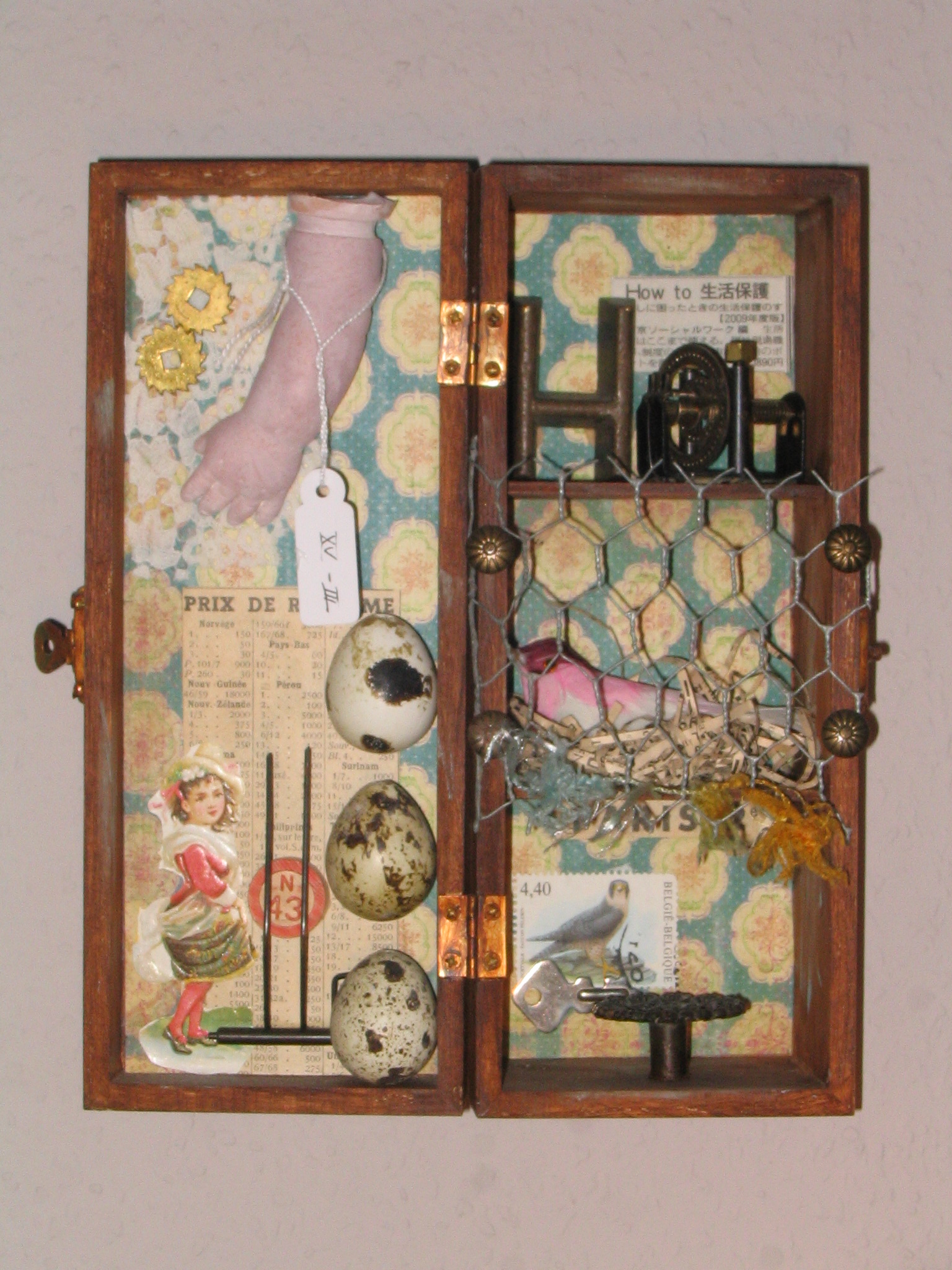 Assemblage box with arm and eggs
