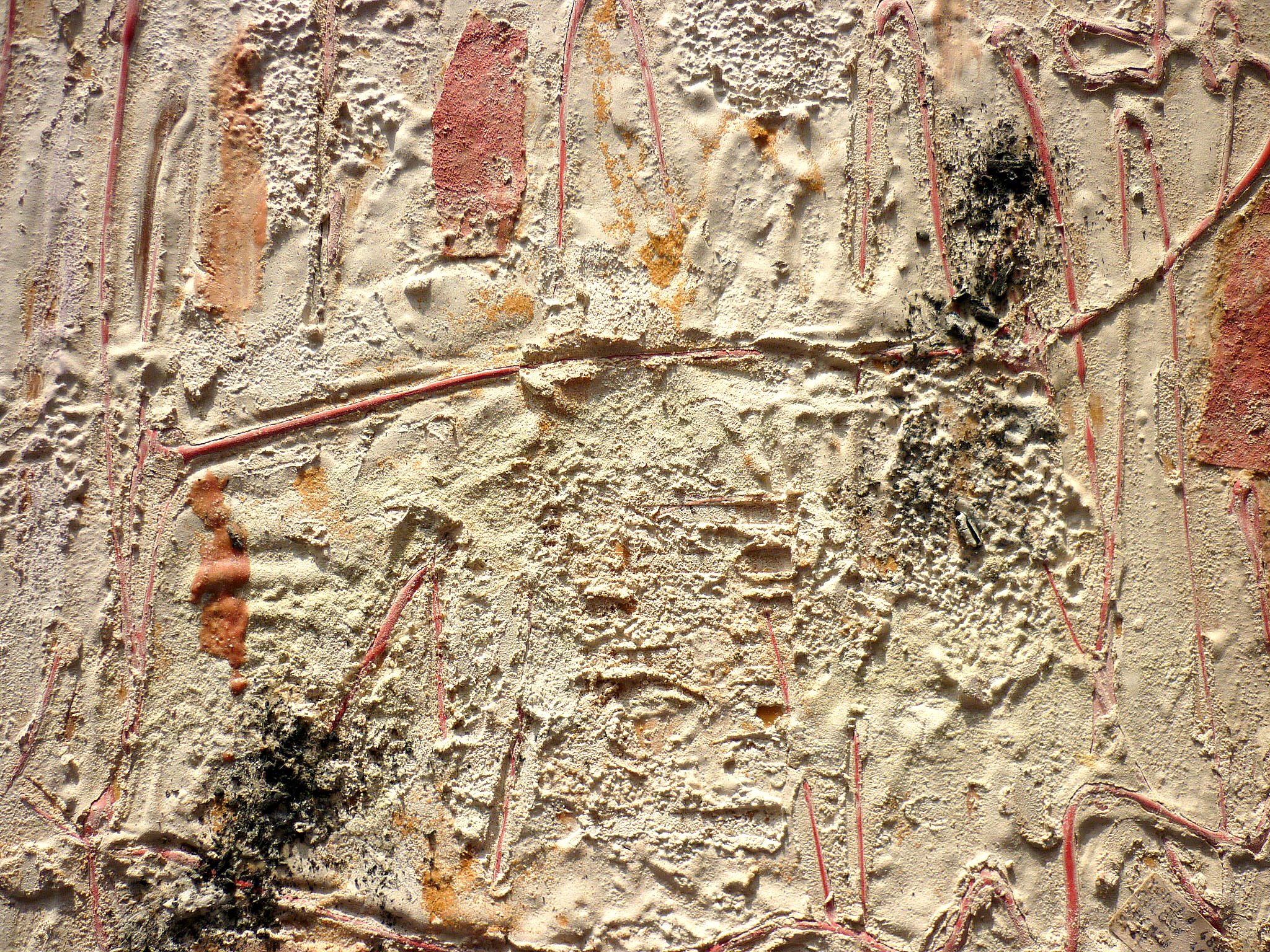 Houten paneel op canvasdoek opgebouwd uit gietsteen, zand, acryl