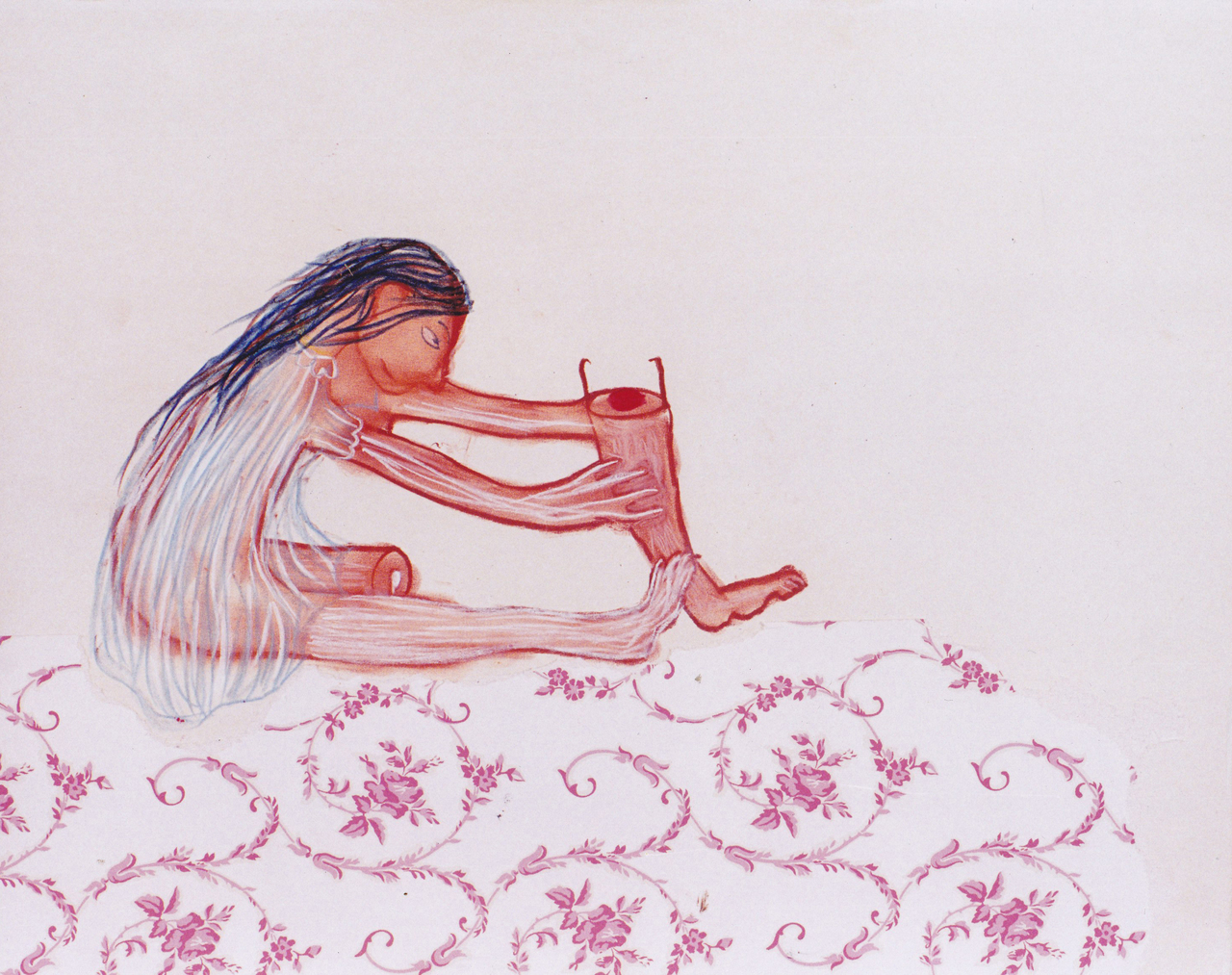 Pastel, behang op mdf.