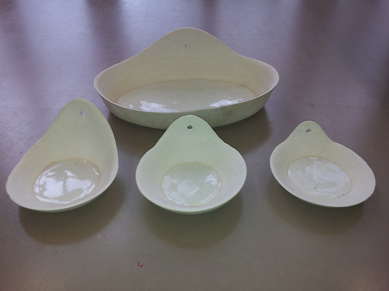 Ophangbakjes, half geglazuurd, verschillende formaten. Groot formaat. Geschatte afmeting: 22 x 12 cm