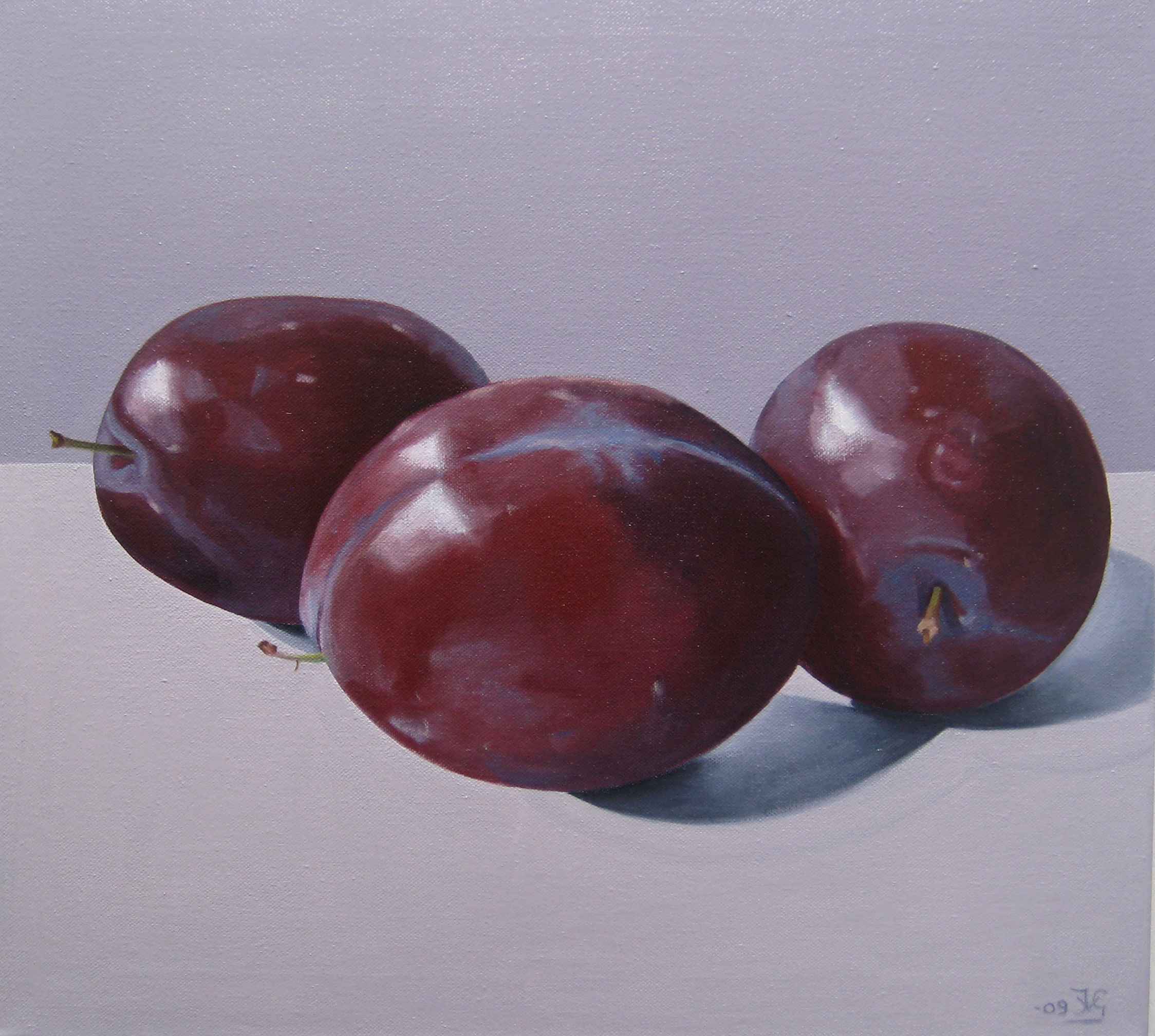 Drie pruimen Zelf opgespannen en geprepareerde linnen Naar eigen compositie
