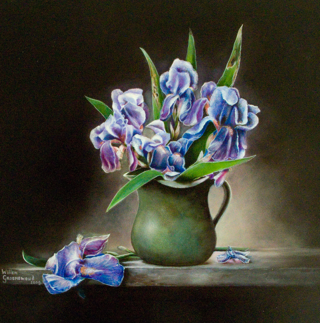 Vaas Olieverf Paneel Iris Stilleven Irissen Vase Flags