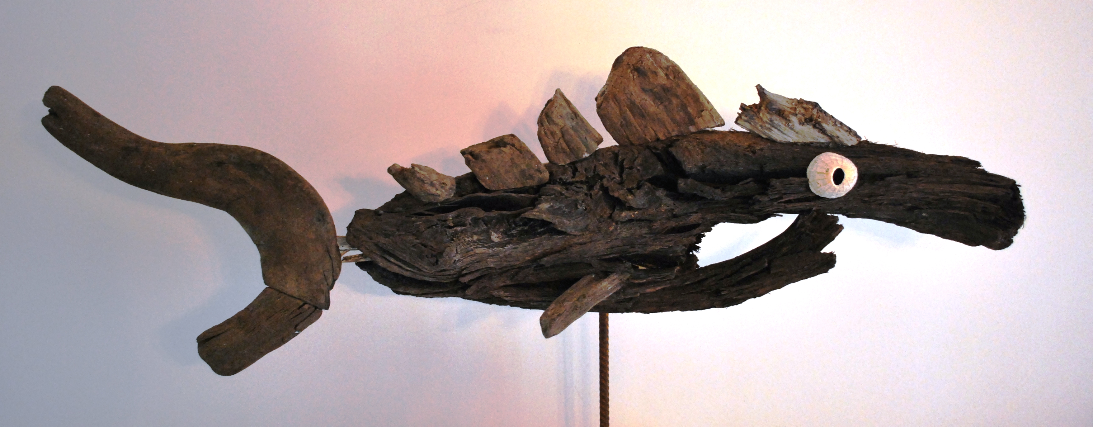 Driftwood 2 Een uit Texels drijfhout gemaakte vis. Door een zeer sterke structuur van het hout en donkere kleur, heeft de vis een heel eigen karakter.