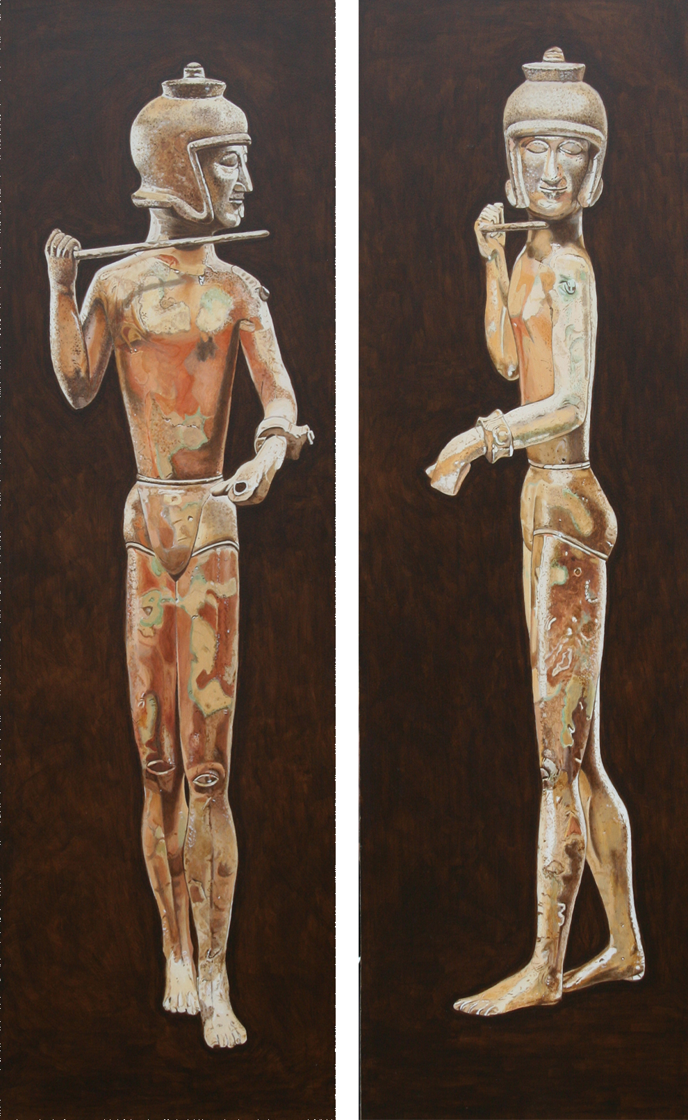 Tweeluik Realistisch Olieverf Beeldje Bronzen Etruskisch Soldaatje