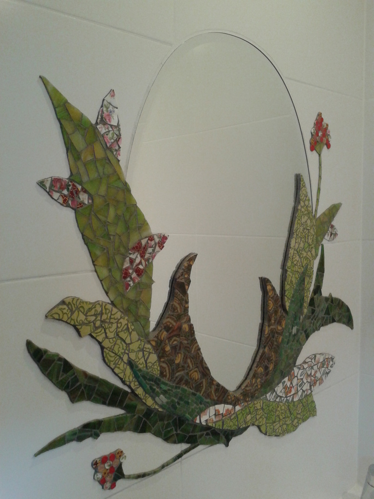Voor je zie je fragmenten uit de wereld van mij, Mirjam van der Donk (1963), autodidact. Een mozaïek maken is voor mij het uitdrukken van zielsberoerselen, fases uit het leven, waarvan de elementen mooi op elkaar aansluiten. Noodzaak daarbij is reliëf, als een levensweg die niet over gebaande paden loopt. Soms bouw ik muurtjes in mijn werk. Die functioneren als een soort houvast waar het leven niet maakbaar is. Het is een soort behoefte aan stabiliteit in roerige tijden. Het hergebruiken van materialen die anders afgedankt zouden worden geeft mij vaak inspiratie. Ik ben nogal voor duurzaamheid. Met mijn mozaïeken voelt het alsof ik daar een bijdrage aan lever.