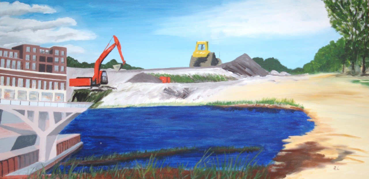 Limburgs landschap, schilderij naar aanleiding van een kunstmanifestatie in het Limburgs museum ( Venlo ).