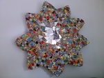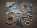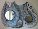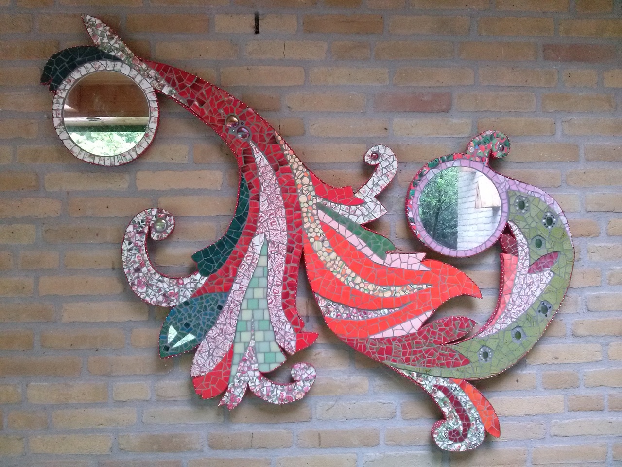 Voor je zie je fragmenten uit de wereld van mij, Mirjam van der Donk (1963), autodidact. Een mozaïek maken is voor mij het uitdrukken van zielsberoerselen, fases uit het leven, waarvan de elementen mooi op elkaar aansluiten. Noodzaak daarbij is reliëf, als een levensweg die niet over gebaande paden loopt. Soms bouw ik muurtjes in mijn werk. Die functioneren als een soort houvast waar het leven niet maakbaar is. Het is een soort behoefte aan stabiliteit in roerige tijden. Het hergebruiken van materialen die anders afgedankt zouden worden geeft mij vaak inspiratie. Ik ben nogal voor duurzaamheid. Met mijn mozaïeken voelt het alsof ik daar een bijdrage aan lever.